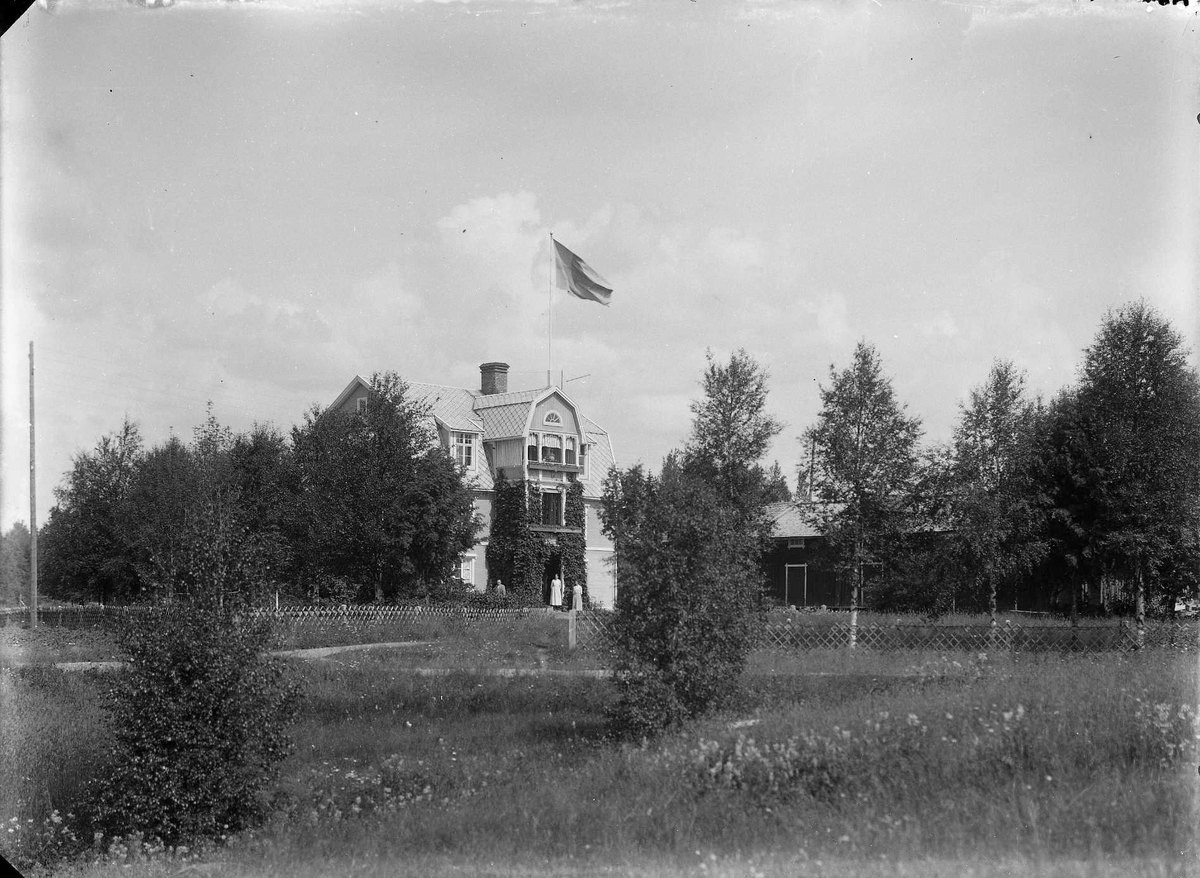 Ett hus med en flagga på taket.