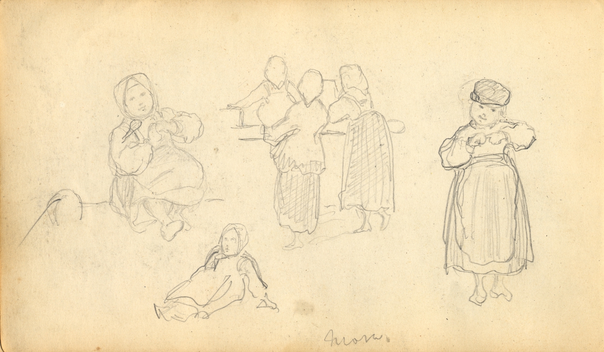 Blyertsskisser. Människor. Barn. Mora. Ur J.A Malmströms skissböcker.