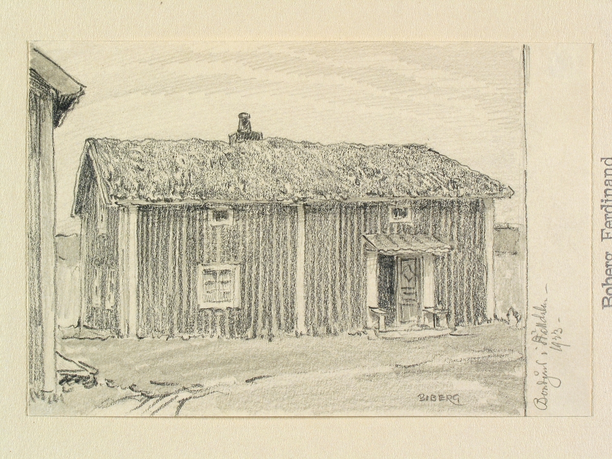 Västmanland, Ljusnarsbergs sn. "Bondgård i Ställdalen". Teckning av Ferdinand Boberg.