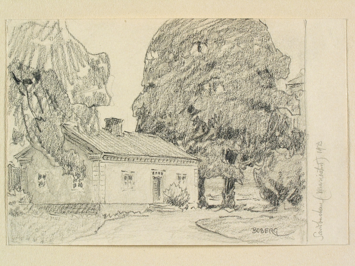 Teckning av Ferdinand Boberg. Västergötland, Sandbacken