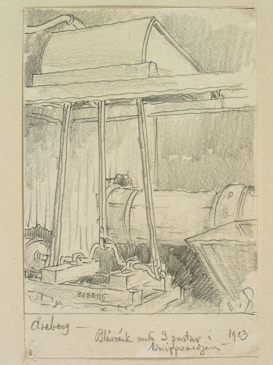 Teckning av Ferdinand Boberg. Västergötland, Kåkinds hd., Kyrkefalla sn., Åreberg
