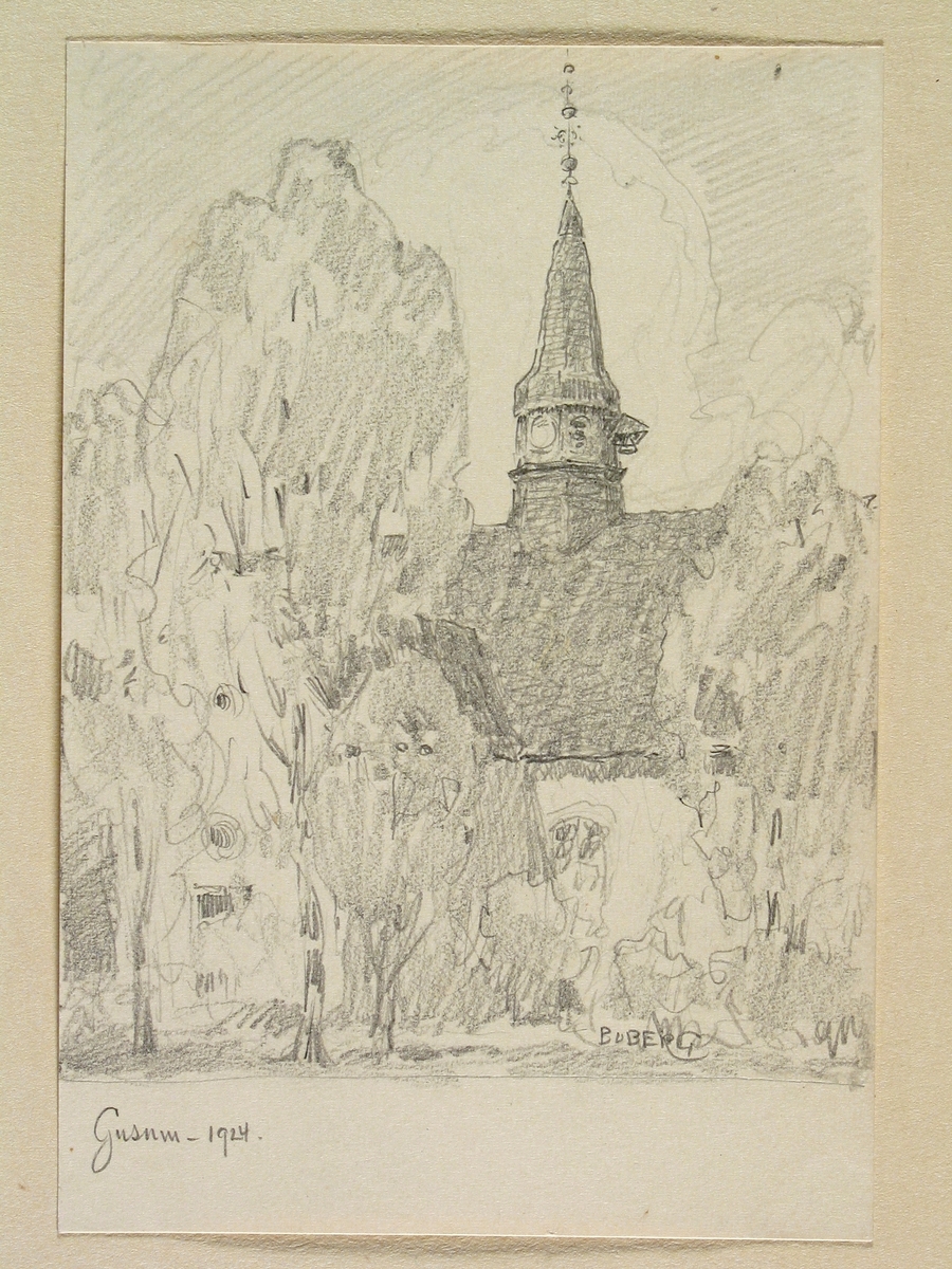 Teckning av Ferdinand Boberg. Östergötland, Hammarkins hd., Ringarums sn., Gusums kyrka,