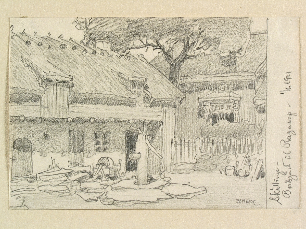 Halland, Himle hd,, Skällinge sn. "Bongdård vid Ragnarp". Teckning av Ferdinand Boberg