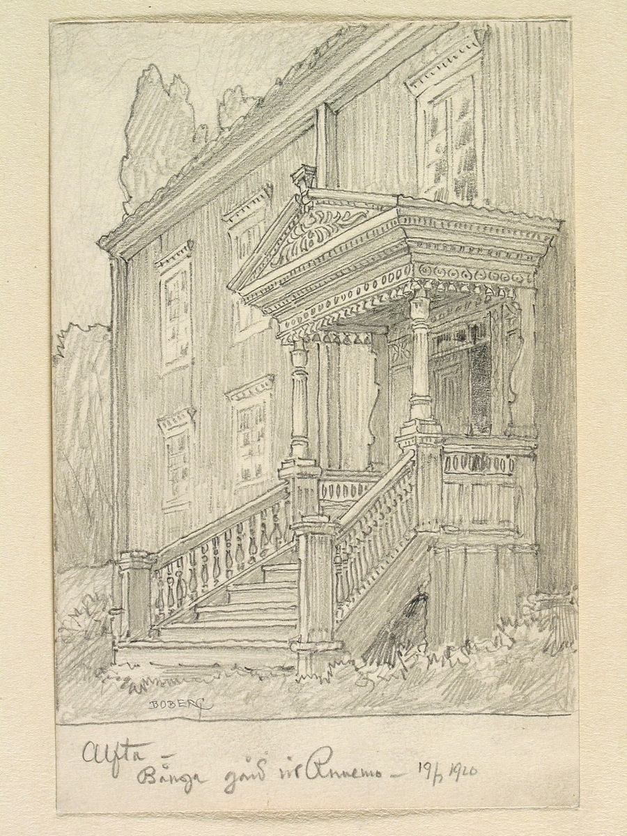 Hälsingland, Alfta sn. "Bånga gård vid Runemo". Teckning av Ferdinand Boberg