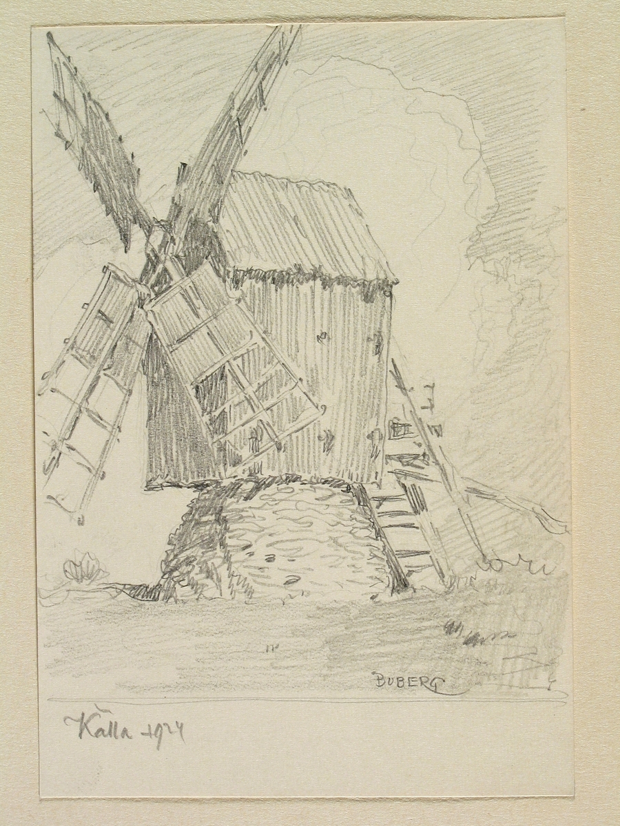 Öland, Åkerbo hd., Källa sn. Väderkvarn. Teckning av Ferdinand Boberg.