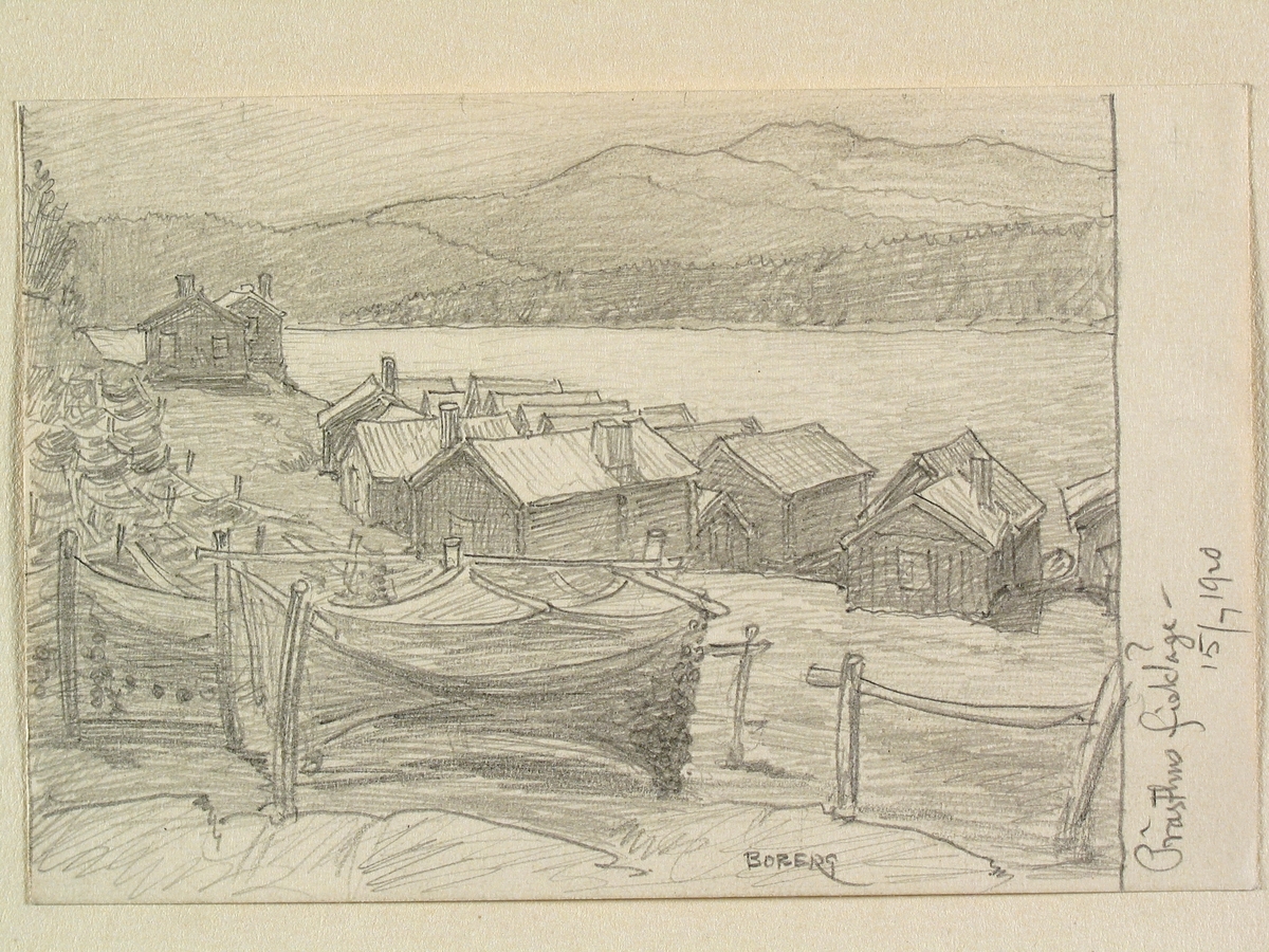 Ångermanland, Hemsö kapellförsamling. Prästhus fiskeläge. Teckning av Ferdinand Boberg.