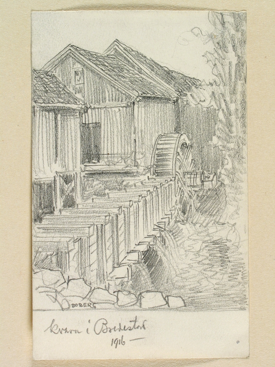 Småland, N. Vedbo hd., Bredestads sn. Kvarn i Bredestad. Teckning av Ferdinand Boberg