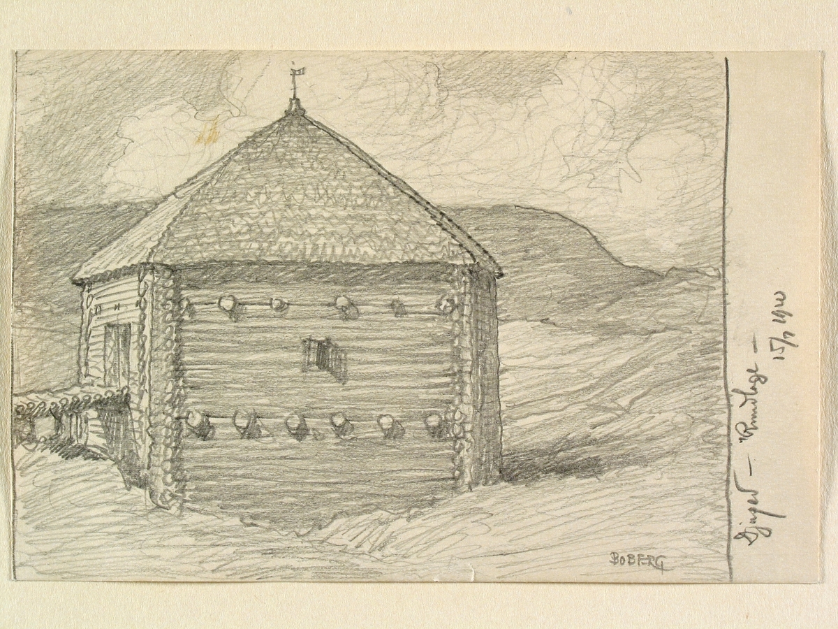 Ångermanland, Styrnäs sn., Djuped. Rundloge. Teckning av Ferdinand Boberg.