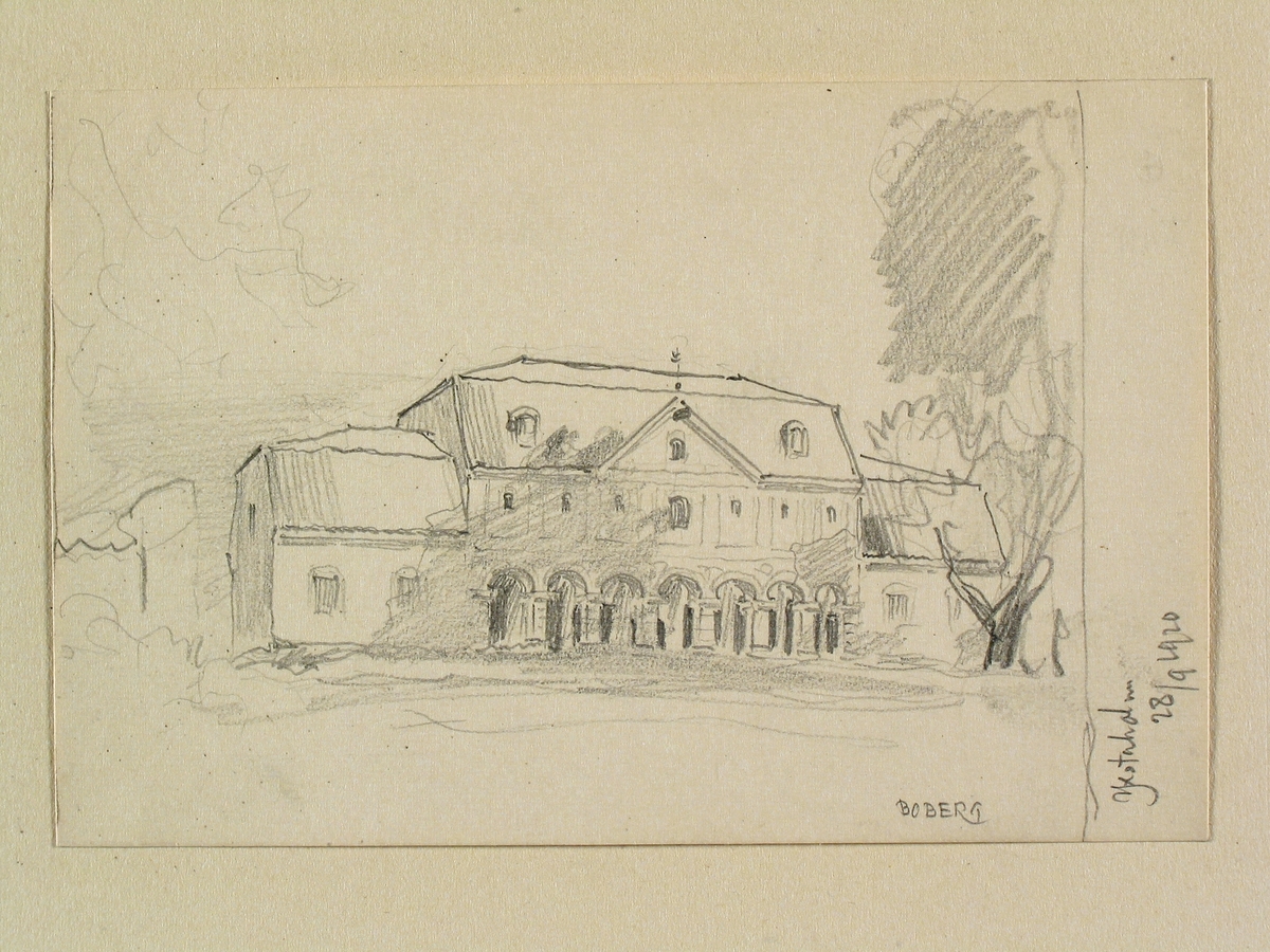 Teckning av Ferdinand Boberg. Södermanland, Villåttinge hd., Lilla Mellösa sn., Yxstaholm, stallet