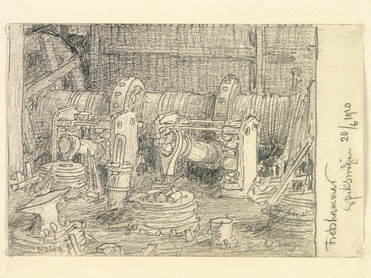 Dalarna, Orsa sn., Fredshammar. Spiksmedjan. Teckning av Ferdinand Boberg