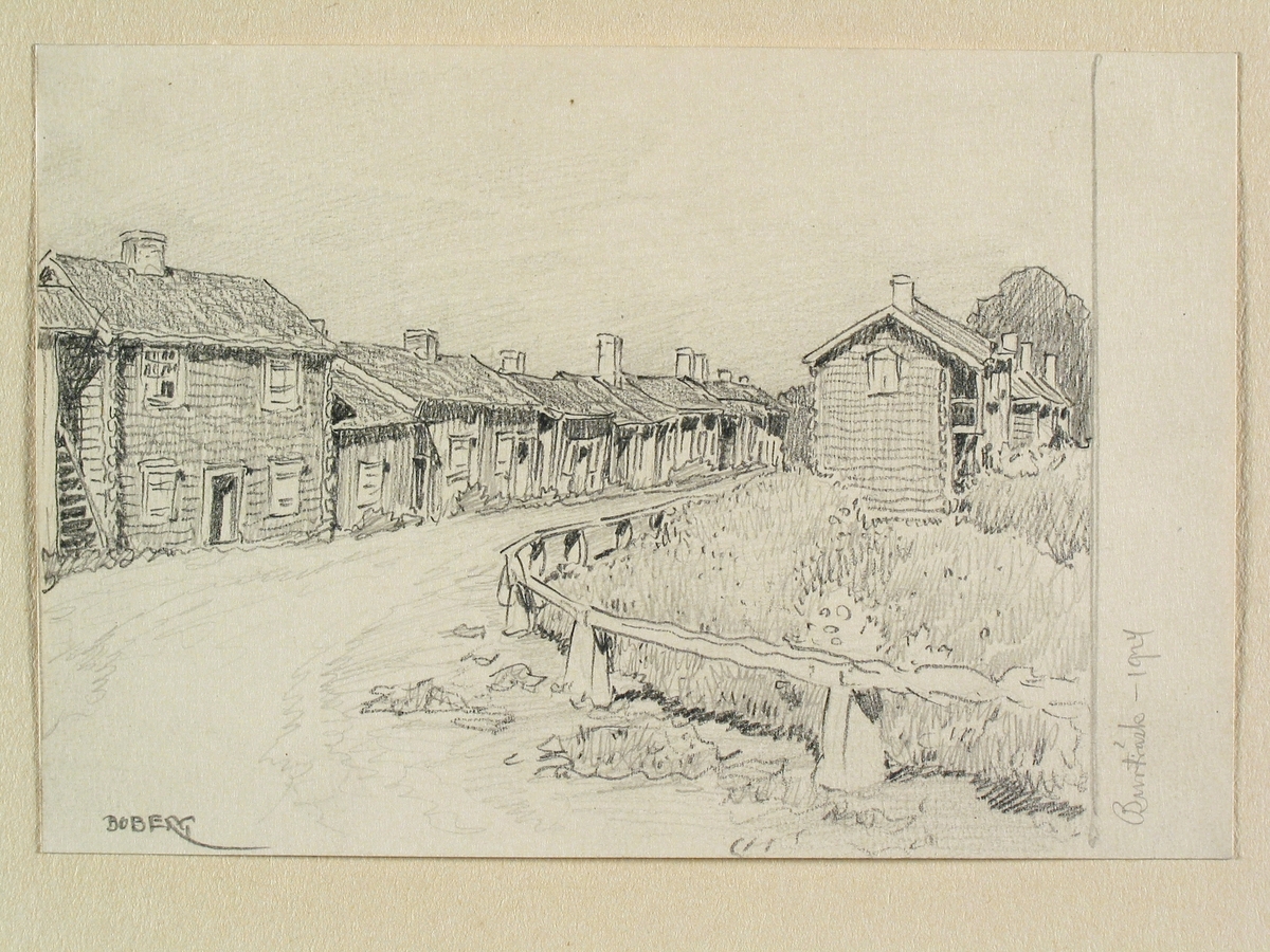 Titel: Västerbotten, Burträsk. Teckning av Ferdinand Boberg