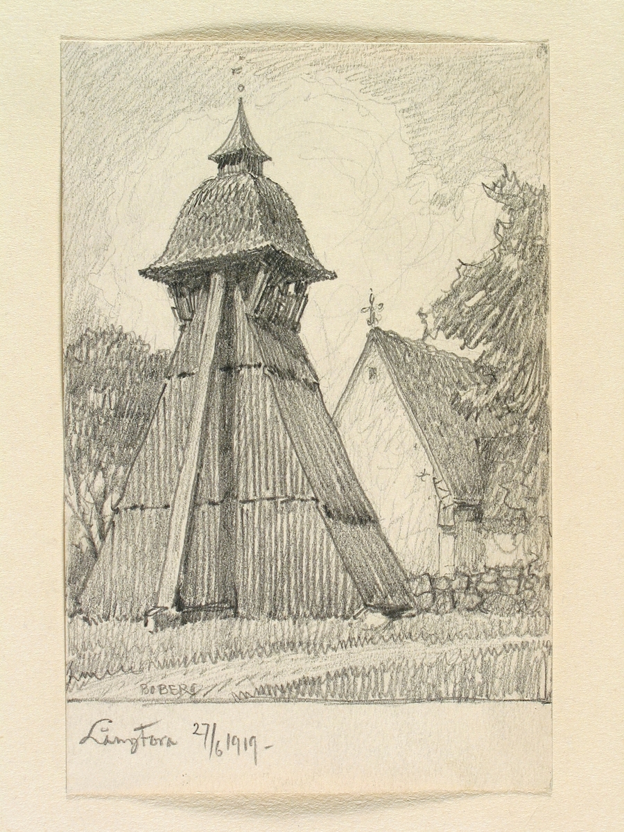 Teckning av Ferdinand Boberg. Uppland, Lagunda hd., Långtora kyrka, Stapeln