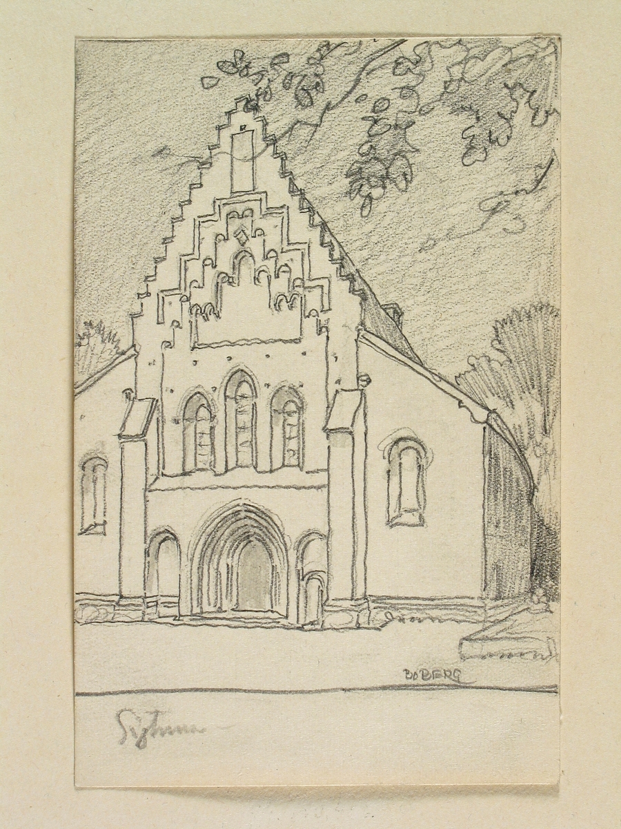 Teckning av Ferdinand Boberg. Sigtuna, St. Nikolai k:a