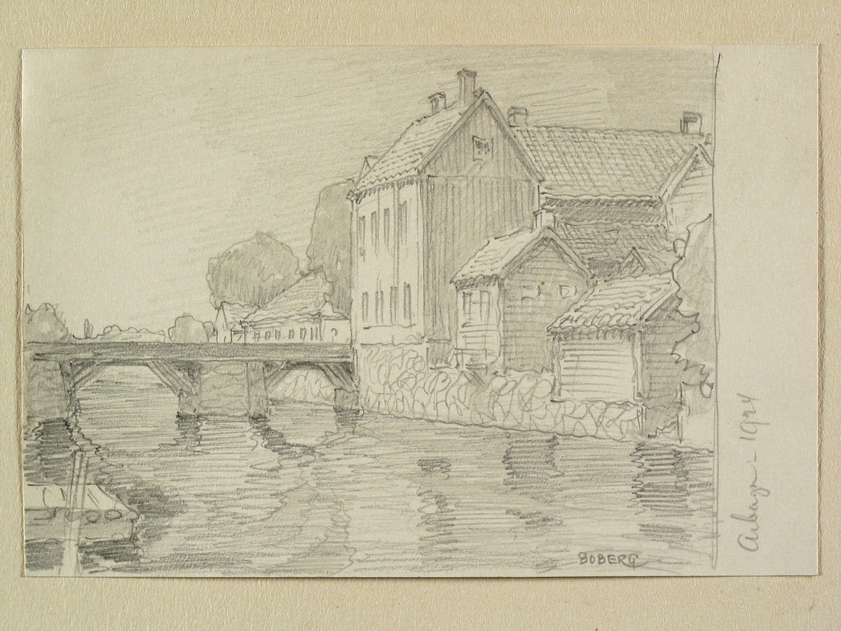 Arboga, Västmanland. Teckning av Ferdinand Boberg.