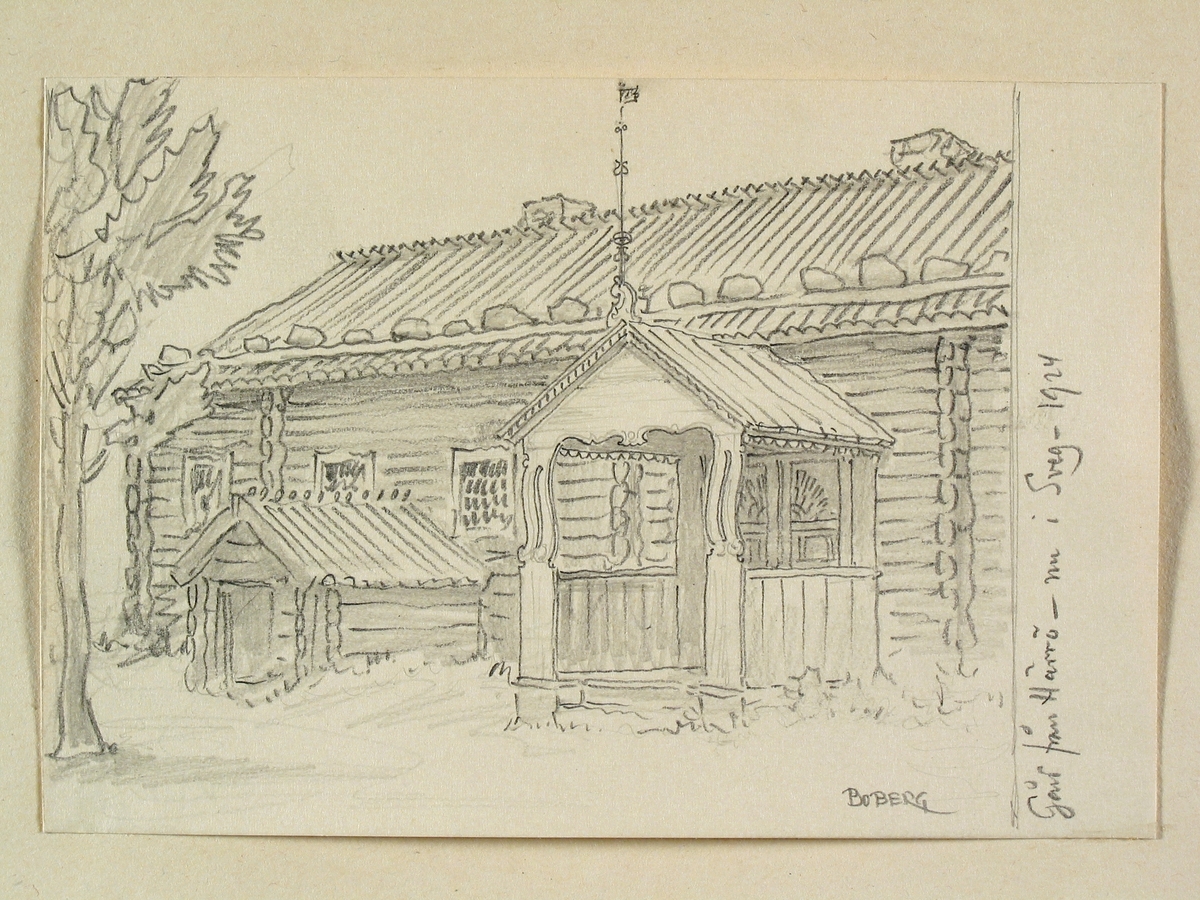 Teckning av Ferdinand Boberg. Härjedalen, Svegs sn., Härrö, Svegs gammelgård