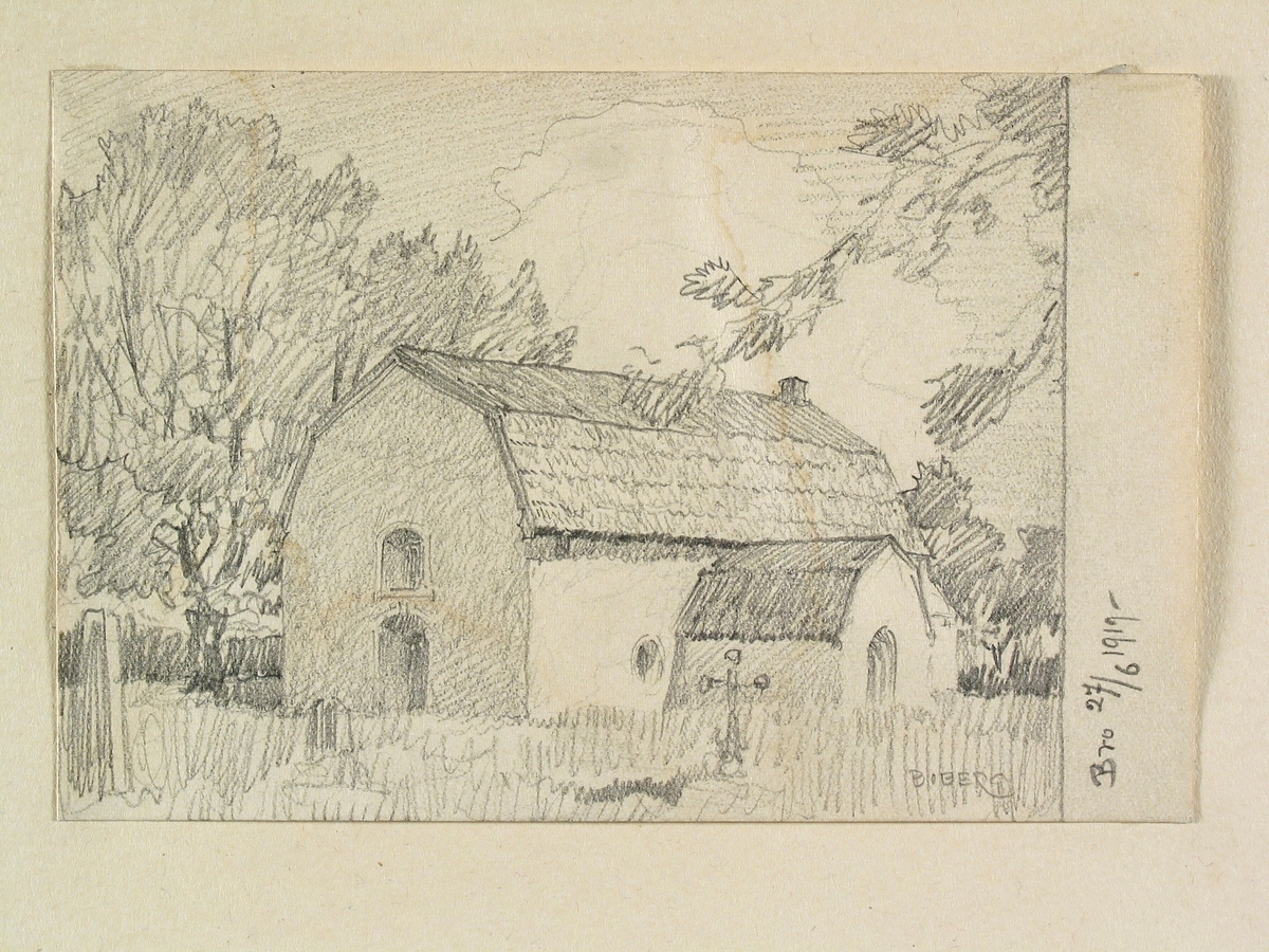 Titel: Teckning av Ferdinand Boberg. Uppland, Bro hd., Bro kyrka