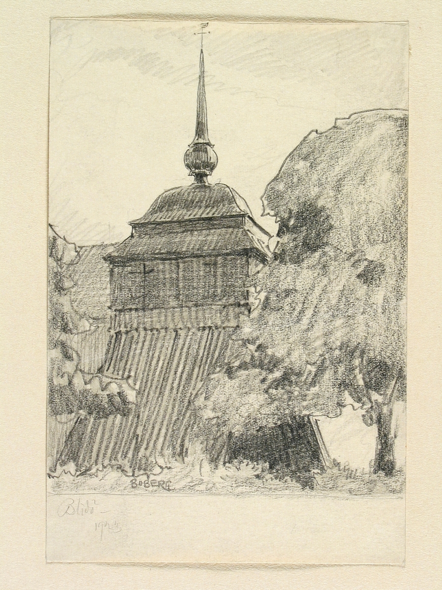 Teckning av Ferdinand Boberg. Uppland, Frötuna och Länna skplg. , Blidö kyrka