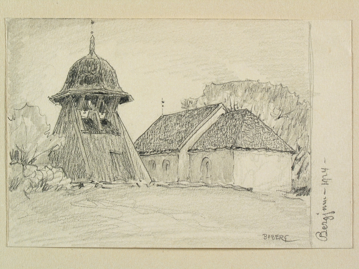 Teckning av Ferdinand Boberg. Västergötland, Vätte hd., Bergjums k:a