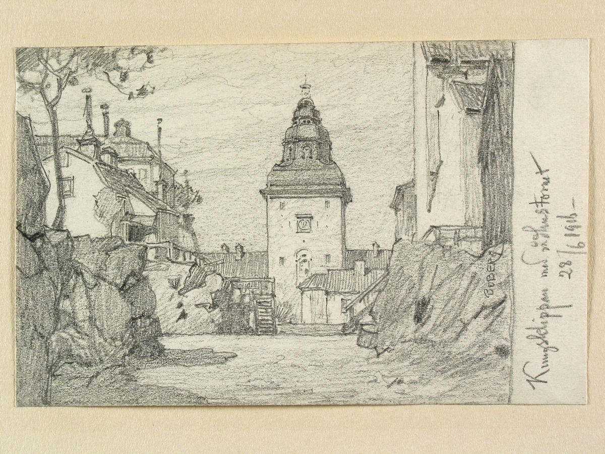 Teckning av Ferdinand Boberg. Stockholm, Kungsholmen , Kungsklippan