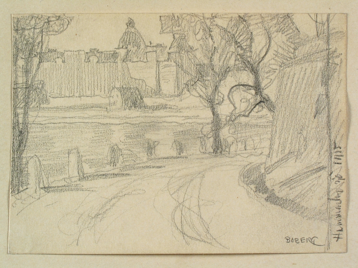 Teckning av Ferdinand Boberg. Stockholm, Hammarbysjö