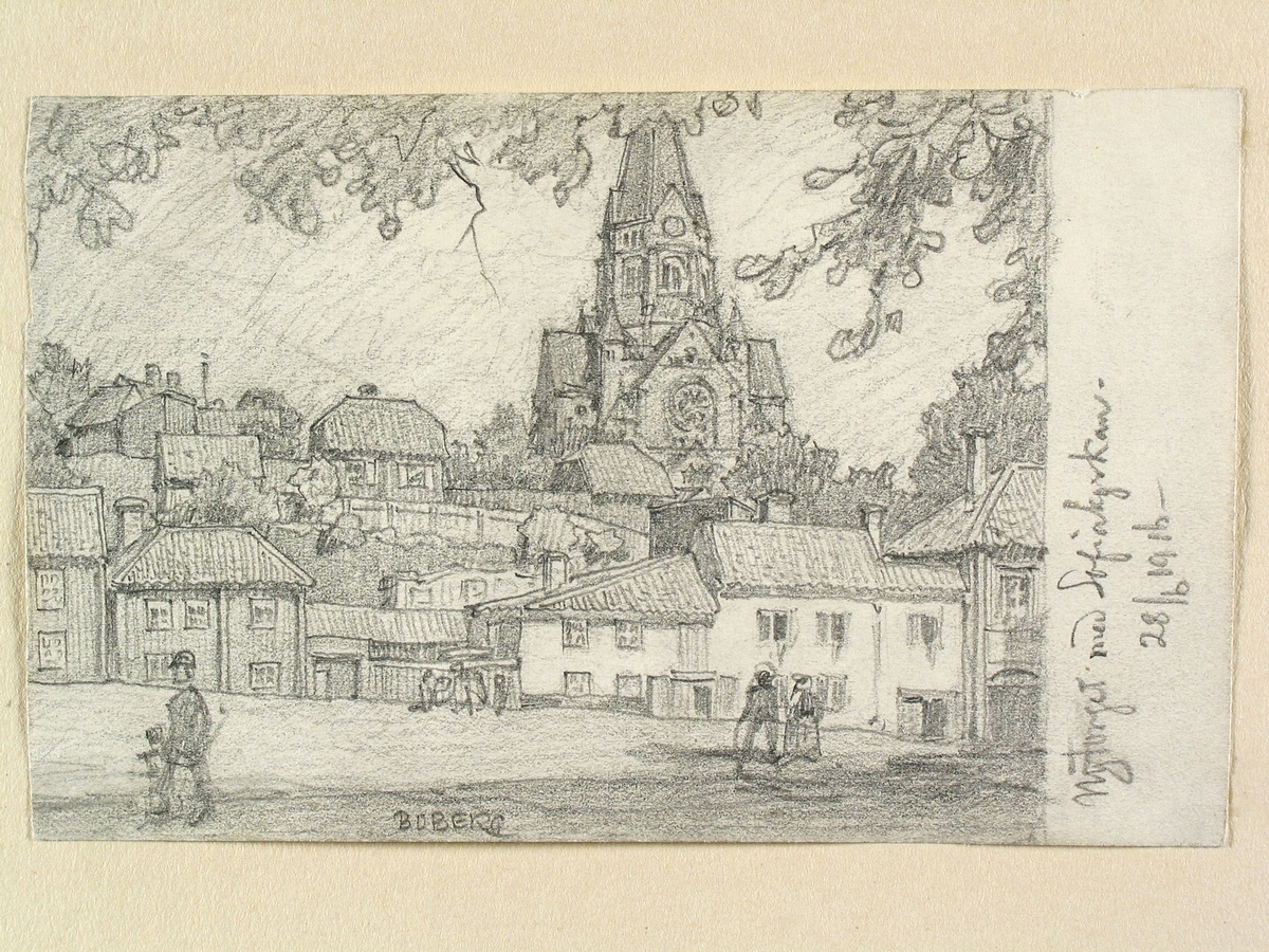 Teckning av Ferdinand Boberg. Stockholm, Söder, Nytorget
