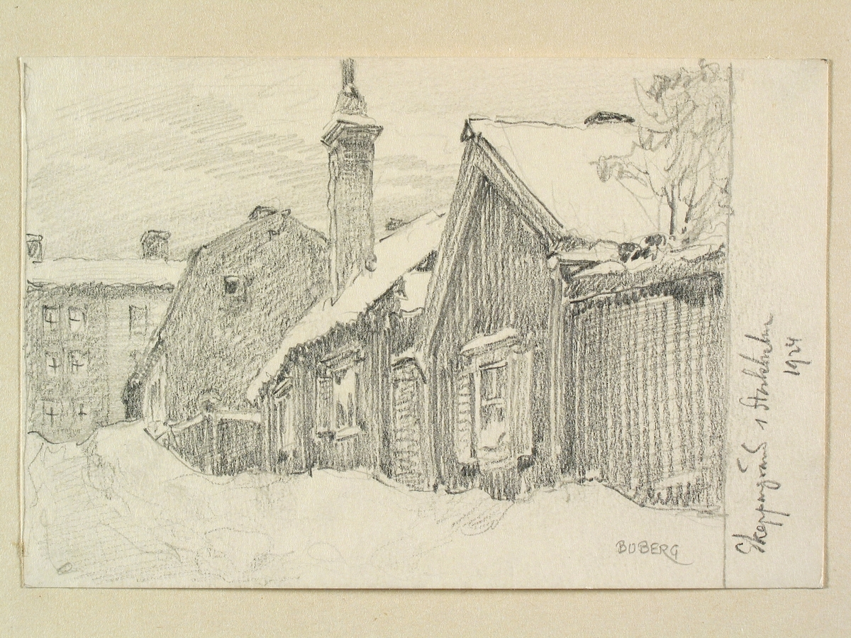 Teckning av Ferdinand Boberg. Stockholm, Söder, Kv. Tjärhovet , Skepparegränd