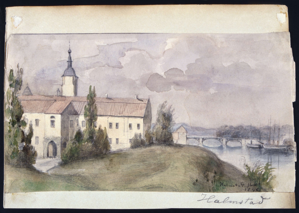 "Halmstad slott". Akvarell av Fritz von Dardel, 1846.