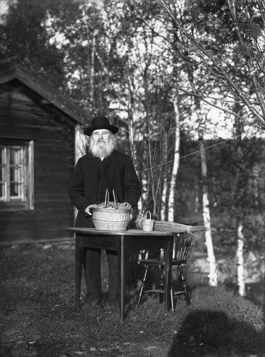 Mill Magnus Olsson i V:a Ärnäs från sitt 4:e levnadsår blind och dövstum. Trots sitt handikapp tillverkade han vackra korghantverk. f.1844 d. 1933