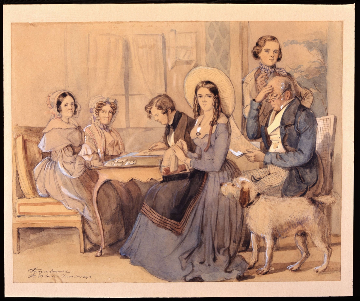 Familjen Dardel i Saint-Blaise, Schweiz. Akvarell av Fritz von Dardel, juli 1843
