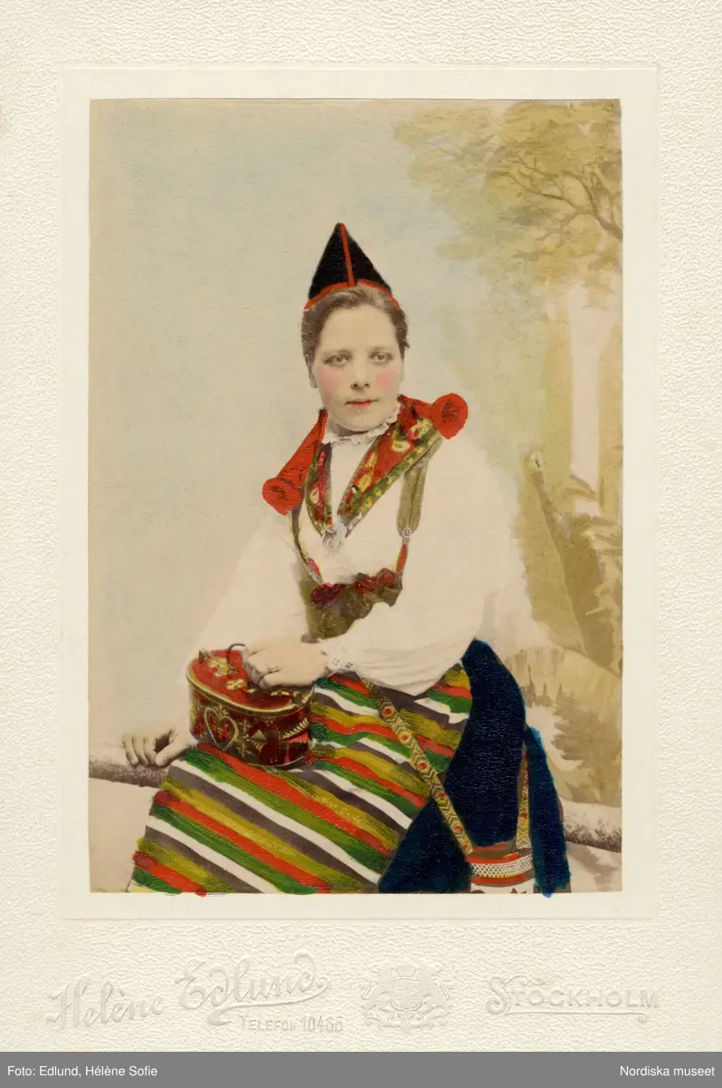 En kvinna poserar i folkdräkt