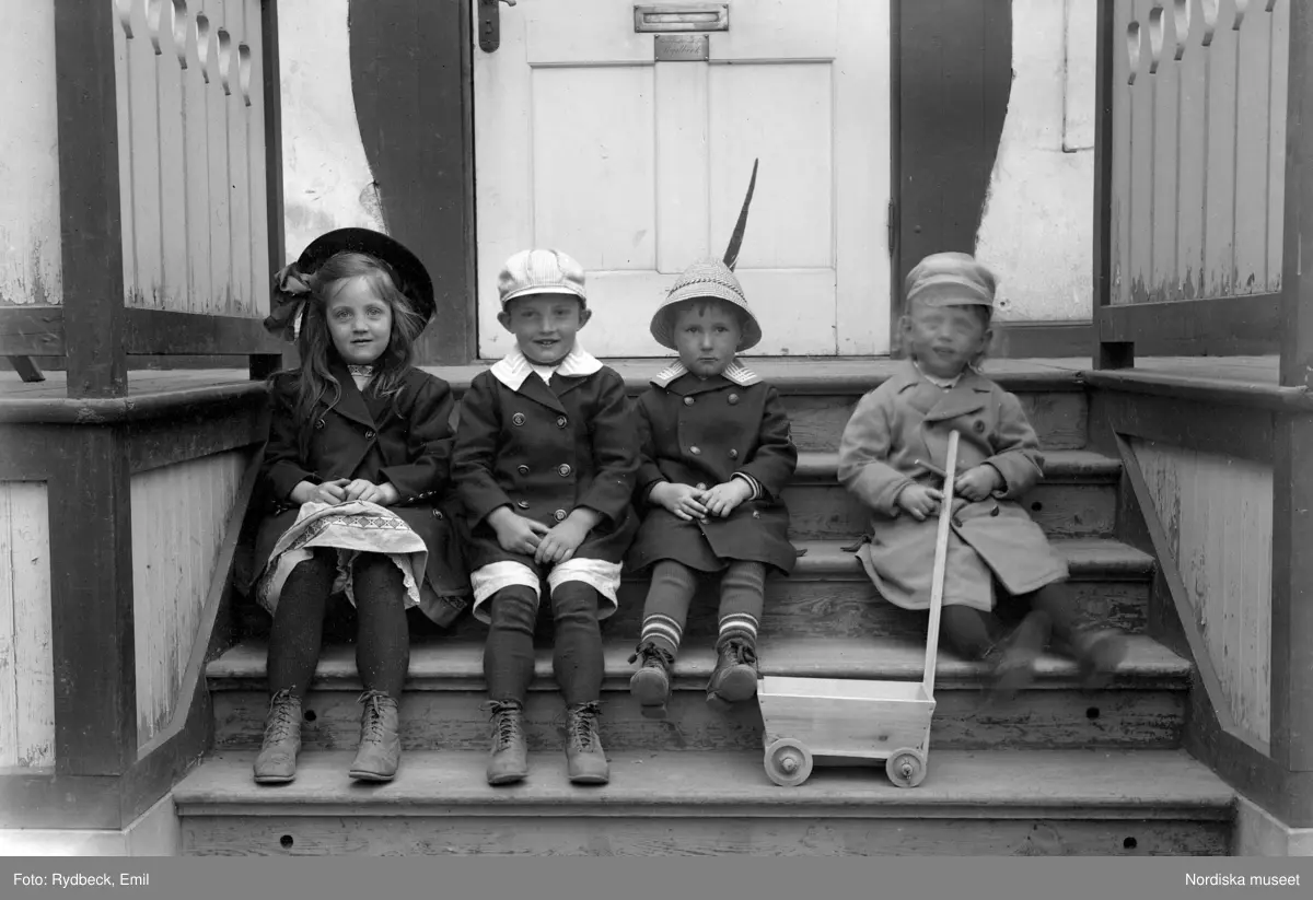 Gruppbild. Ingrid, Gösta Rydbeck, Ingemar Ihre och Erik Rydbeck i Framnäsviken.