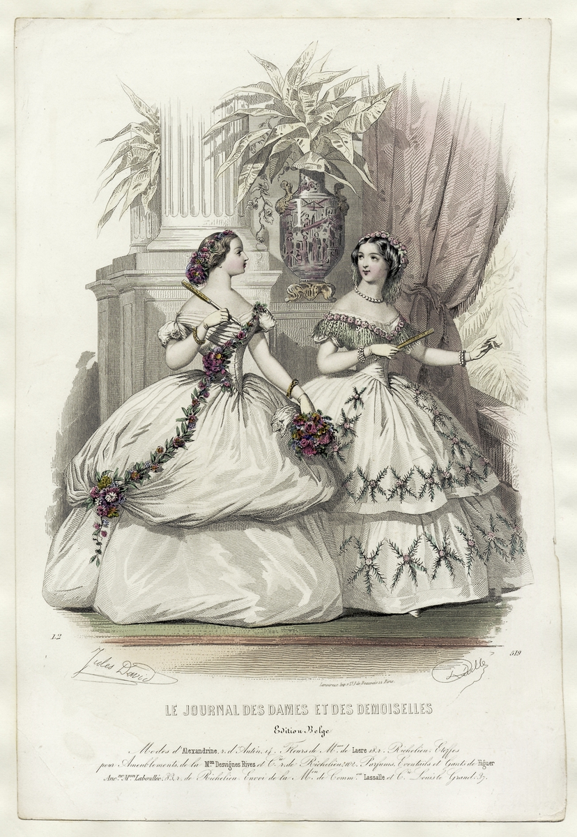 Modeplansch ur "Le journal des dames et des demoiselles" februari 1858.