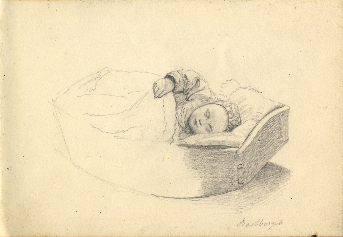 Blyertsskiss. Sovande barn. Bastberget. Ur Skissbok av A. J.G. Virgin