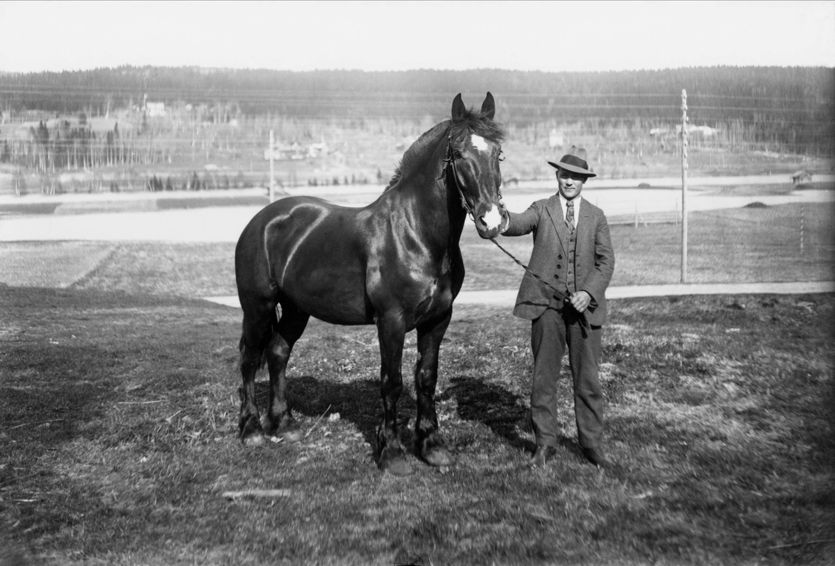 Otto Bojort, Åkra, med häst. Lima, Dalarna.