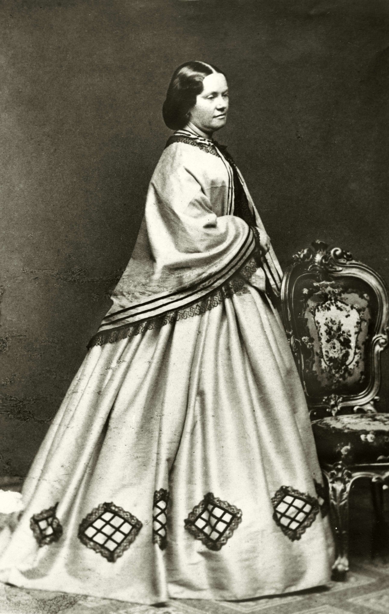 Porträtt av friherrinnan Karin Sophie Adlersparre f. Leijonhufvud ("Esselde"), 1823-1895. Skriftställarinna. Skapare av "Tidskrift för hemmet", Handarbetetets vänner och Fredrika Bremer-förbundet.