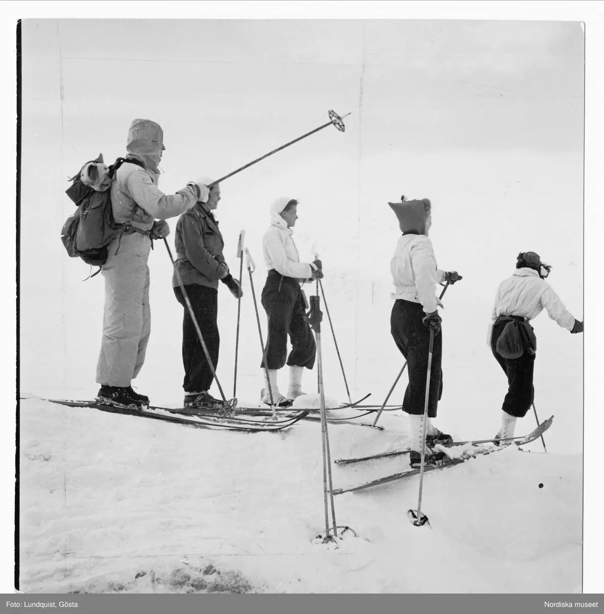 Friluftsliv, skidåkning, fjällen. Fem skidåkare vid Helagsfjället, Jämtland.