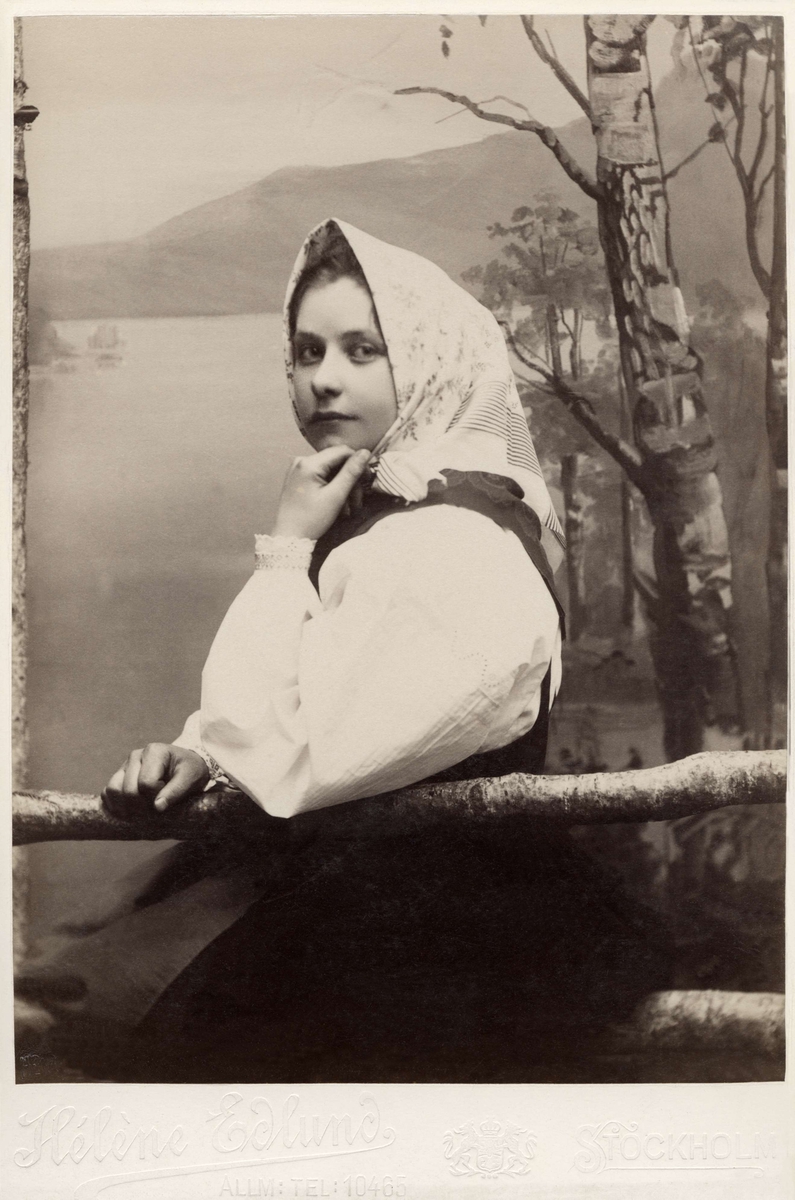 Fotografi på en ung flicka i vit blus och vitt huckle