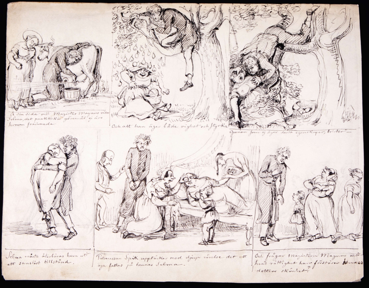 Titel: "Å sin sida vill magister Magnus visa Selma, det praktiska göromål ej äro honom främmande." Tusch av Fritz von Dardel
