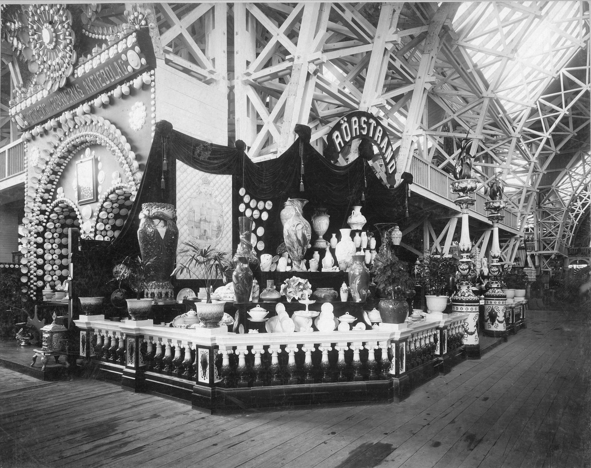 Rörstrands utställningsmonter på Allmänna Konst- & Industriutställningen i Stockholm 1897.