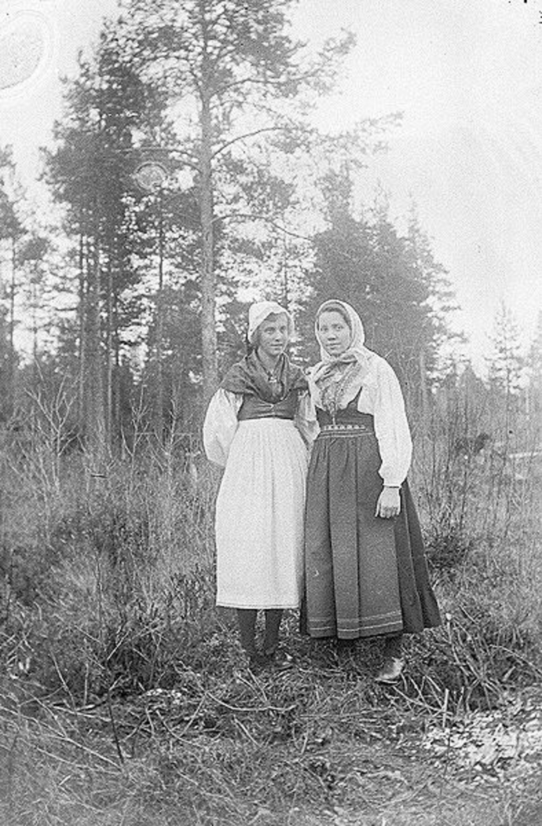 Helporträtt av två kvinnor i folkdräkter. Lima, Dalarna