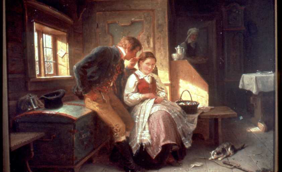 Oljemålningen "Frieriet" av Bengt Nordenberg (1822-1902) från 1864.