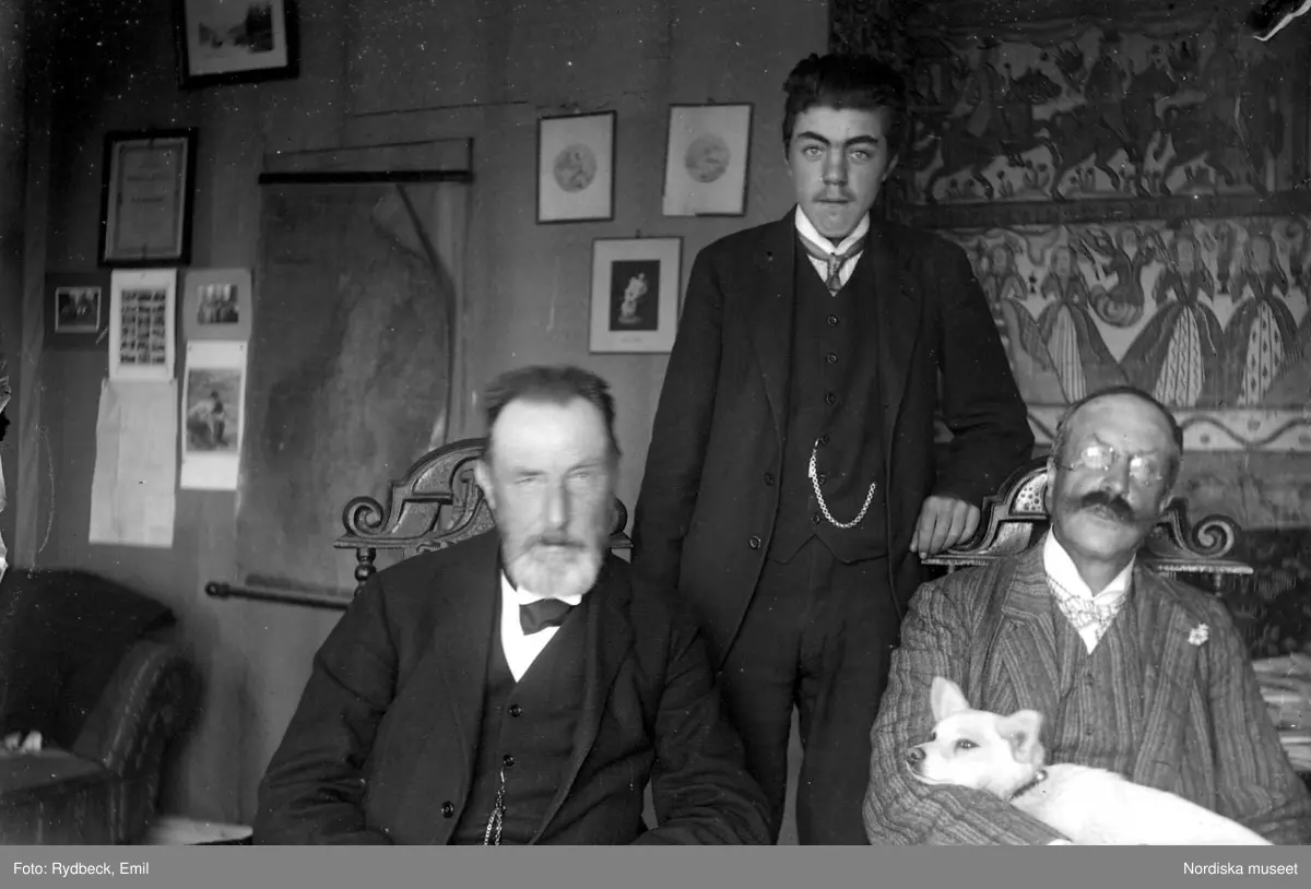 Gruppbild av Emil, Axel och hans son Ragnar i Wernamo.