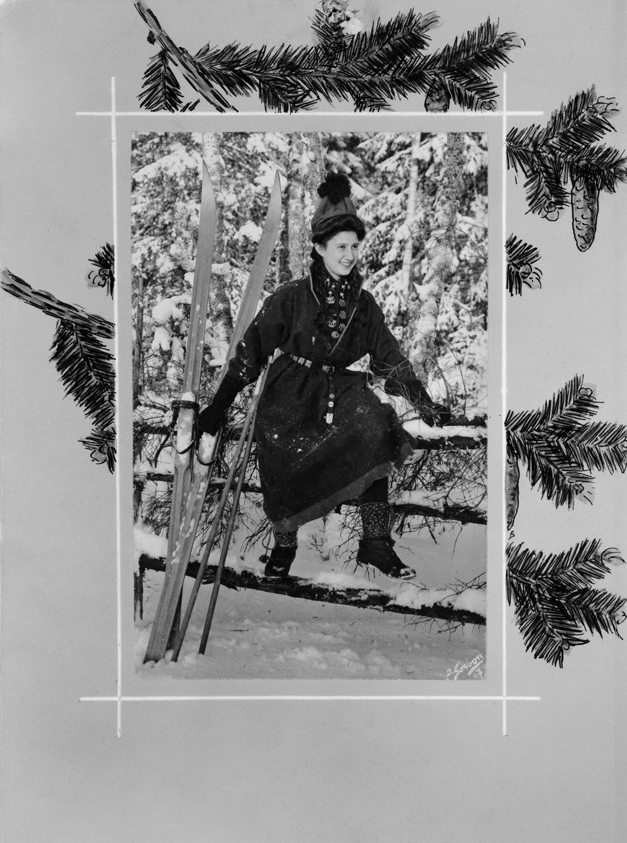 Aina Forsberg i samedräkt som använts som sportdräkt år 1902.