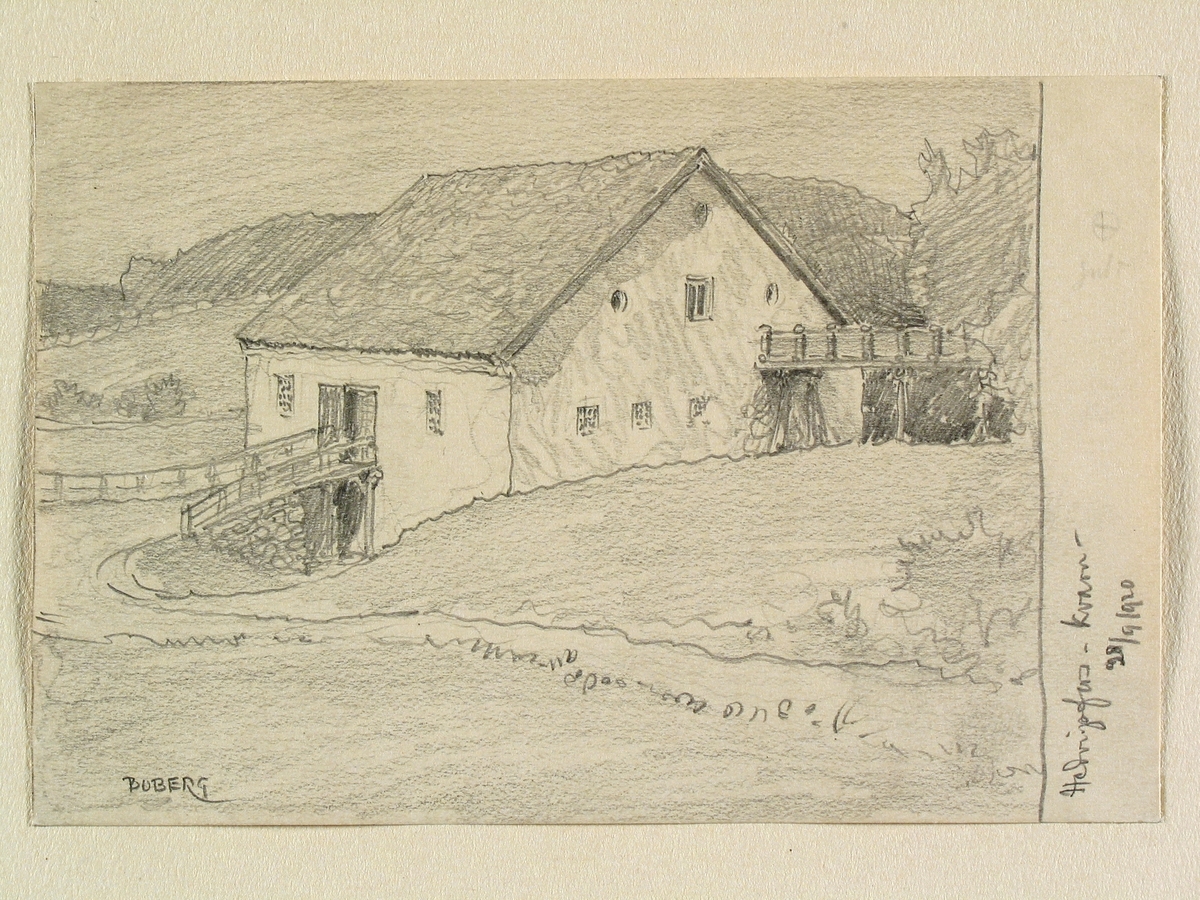Södermanland, Rönö hd., Svärta sn., Hedvigsfors. Kvarn. Teckning av Ferdinand Boberg