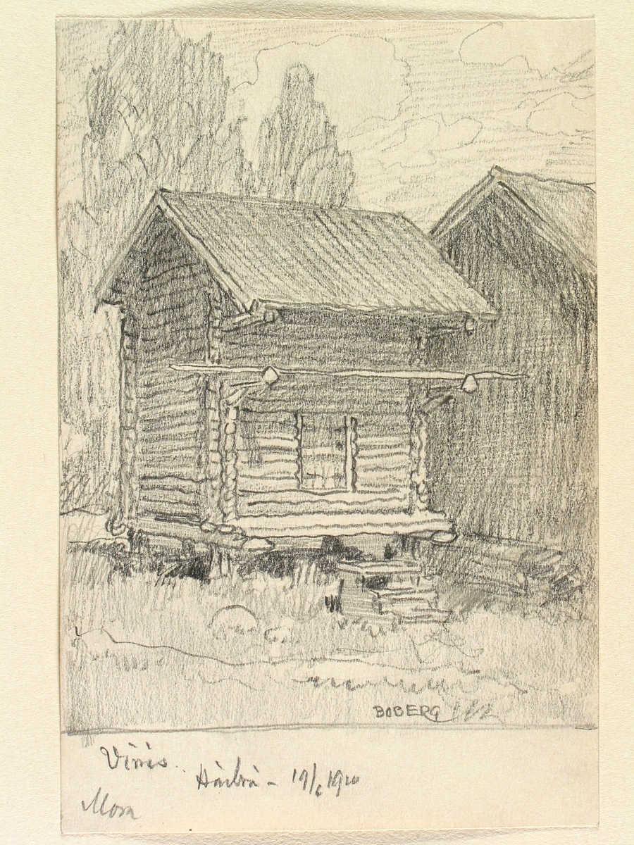 Dalarna, Mora sn., Vinäs. Härbre. Teckning av Ferdinand Boberg
