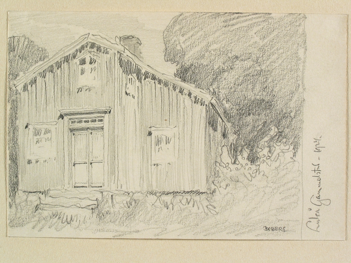 Norrbotten, Nederluleå sn., Luleå gammelstad. Teckning av Ferdinand Boberg.