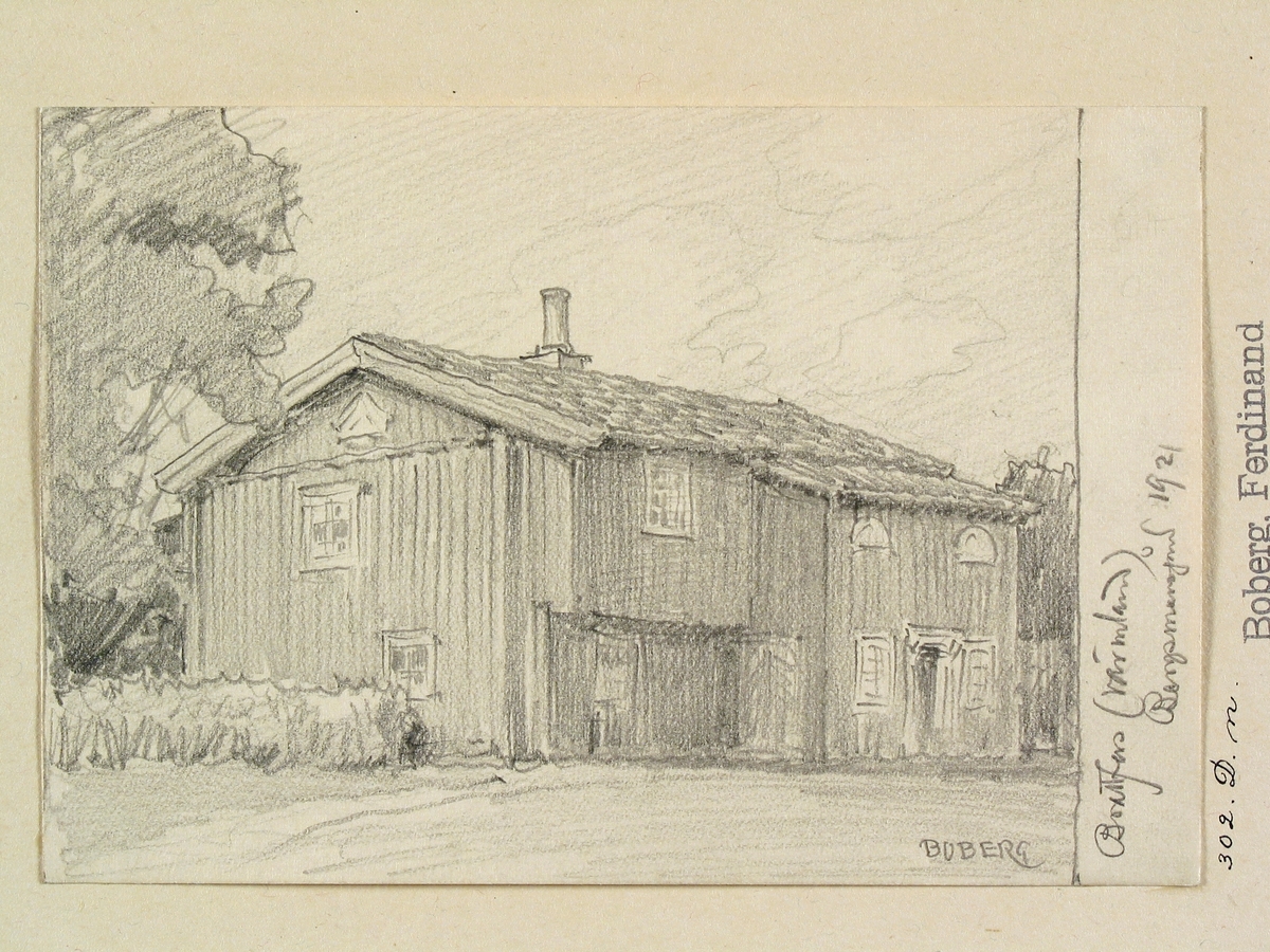 Värmland, Fernebo hd., Brattfors sn., Brattfors. Bergsmansgård. Teckning av Ferdinand Boberg
