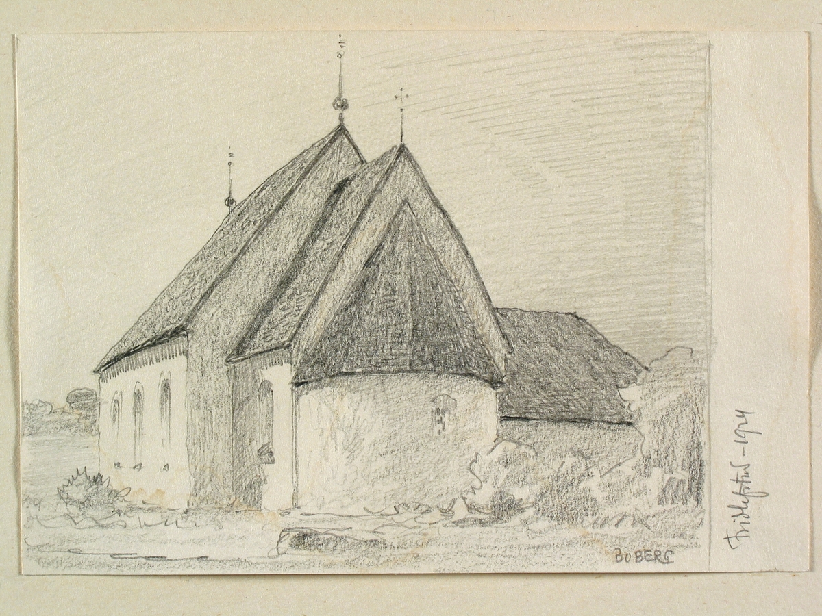 Teckning av Ferdinand Boberg. Blekinge, Medelstads hd., Fridlefstads kyrka