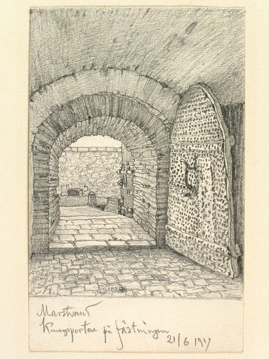 Teckning av Ferdinand Boberg. Marstrand, Fästningen, Kungsporten