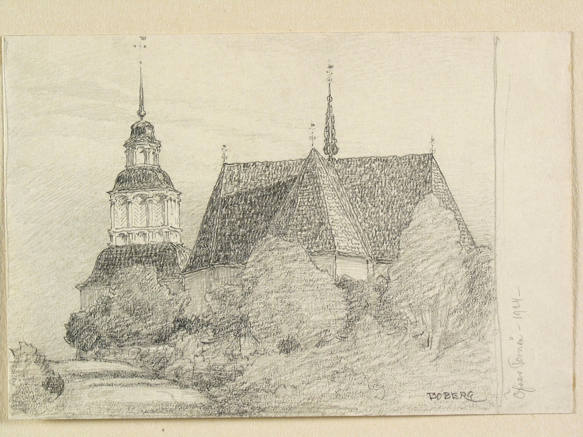 Teckning av Ferdinand Boberg. Norrbotten, Övertorneå kyrka